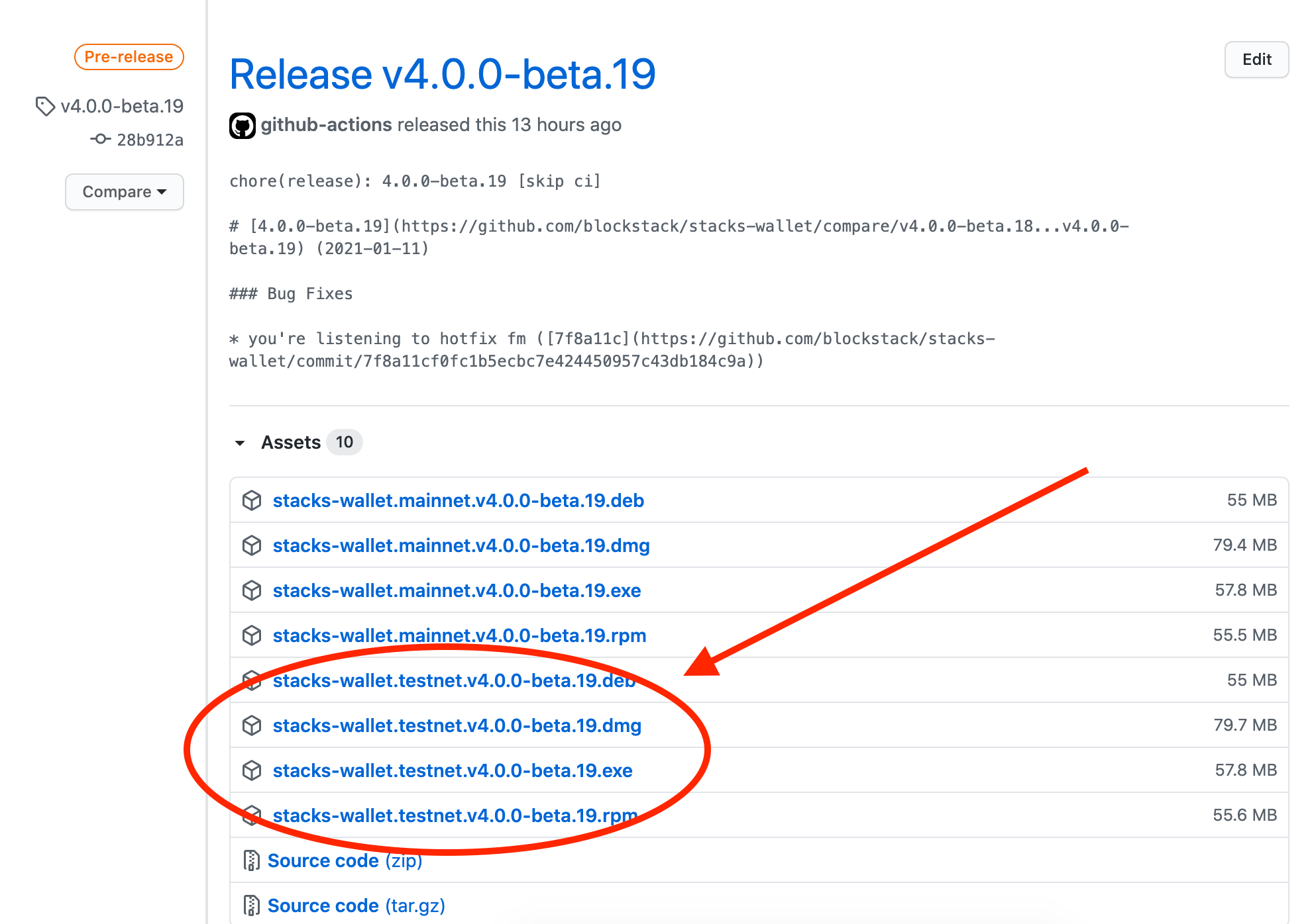 Expand the "Assets" section for the latest release and select the version with "testnet" in the filename that matches your operating system (MacOS, Windows or Linux).
