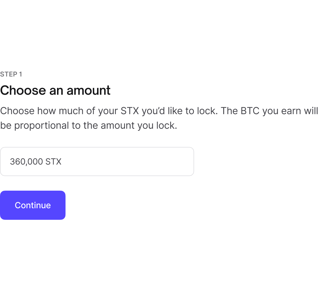 First, determine how much out of your total STX balance you'd like to commit for Stacking: