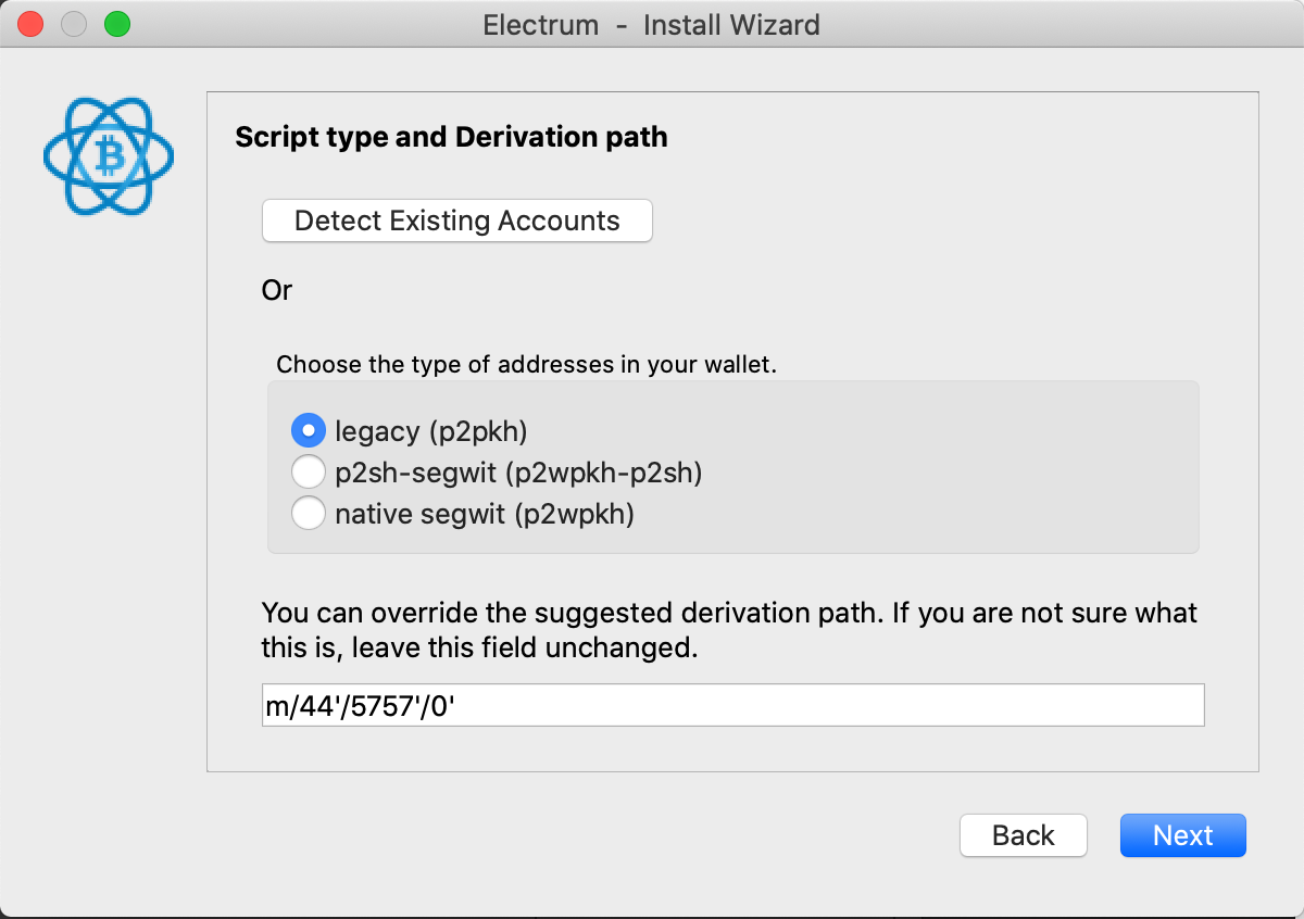 The third-party Electrum wallet can be used for withdrawing your BTC as previously deposited into the Stacks Wallet. The instructions below must be followed using the same Secret Key / seed phrase or hardware device as used to set up the Stacks Wallet originally for managing your STX and depositing BTC from elsewhere.