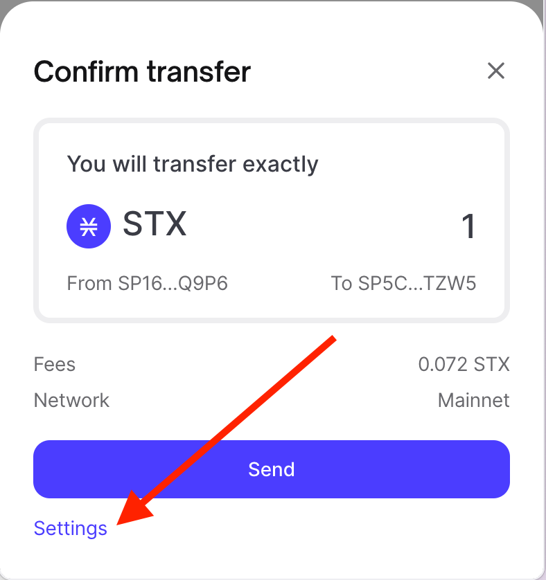 Users can edit the fee and nonce values for any transactions they sign and broadcast to the Stacks blockchain with the Hiro Wallet.
